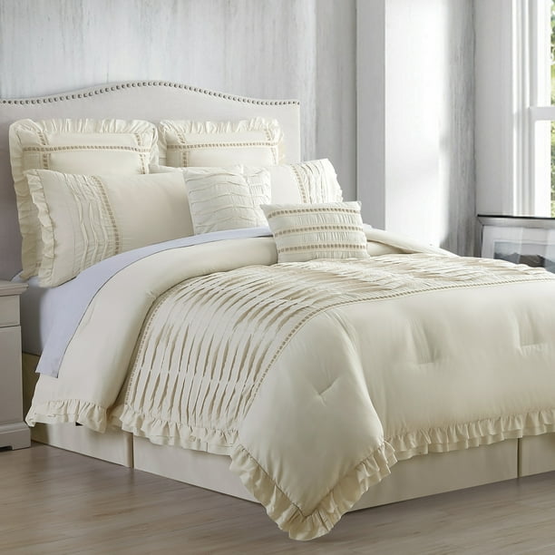 Amazon Com Ella Collection 8 Piece Pin Tuck Comforter Set Ultra Soft Hypoallergenic Complete Bedding Set By Amrapur Overseas Home Kitchen
