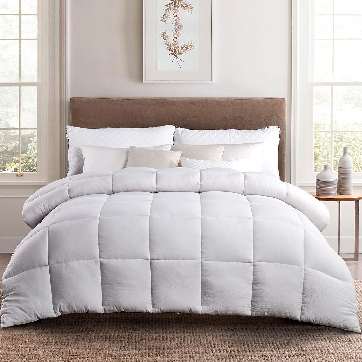 Amazon Com Maxi Down Alternative Bed Comforter 100 Cotton Cover 300 Thread Count Overfilled Hypoallergenic Machine Washable Queen Size 86x86 White Home Kitchen