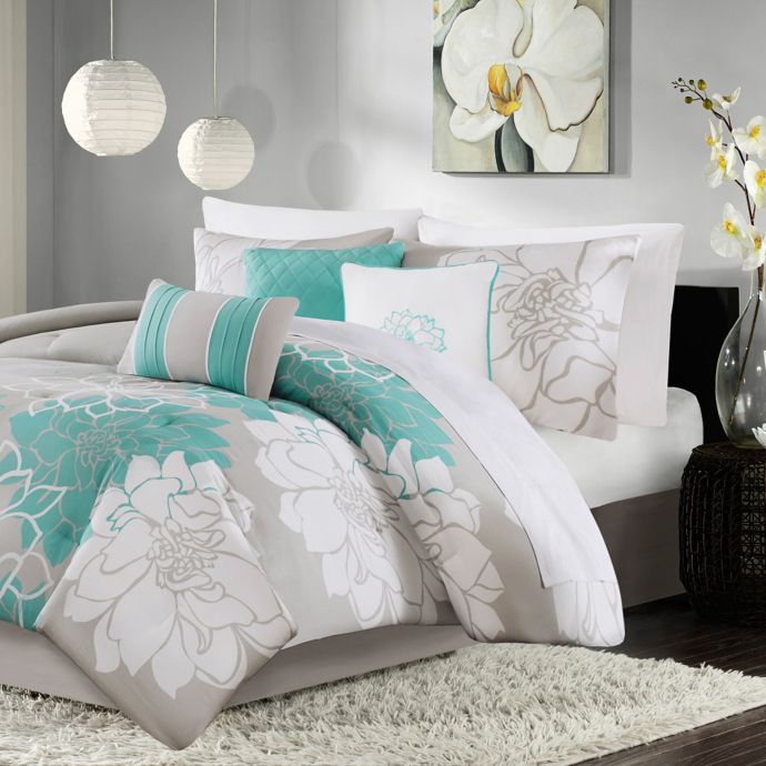 Madison Park Lola 7 Piece Comforter Set In Aqua Bed Bath And Beyond Canada
