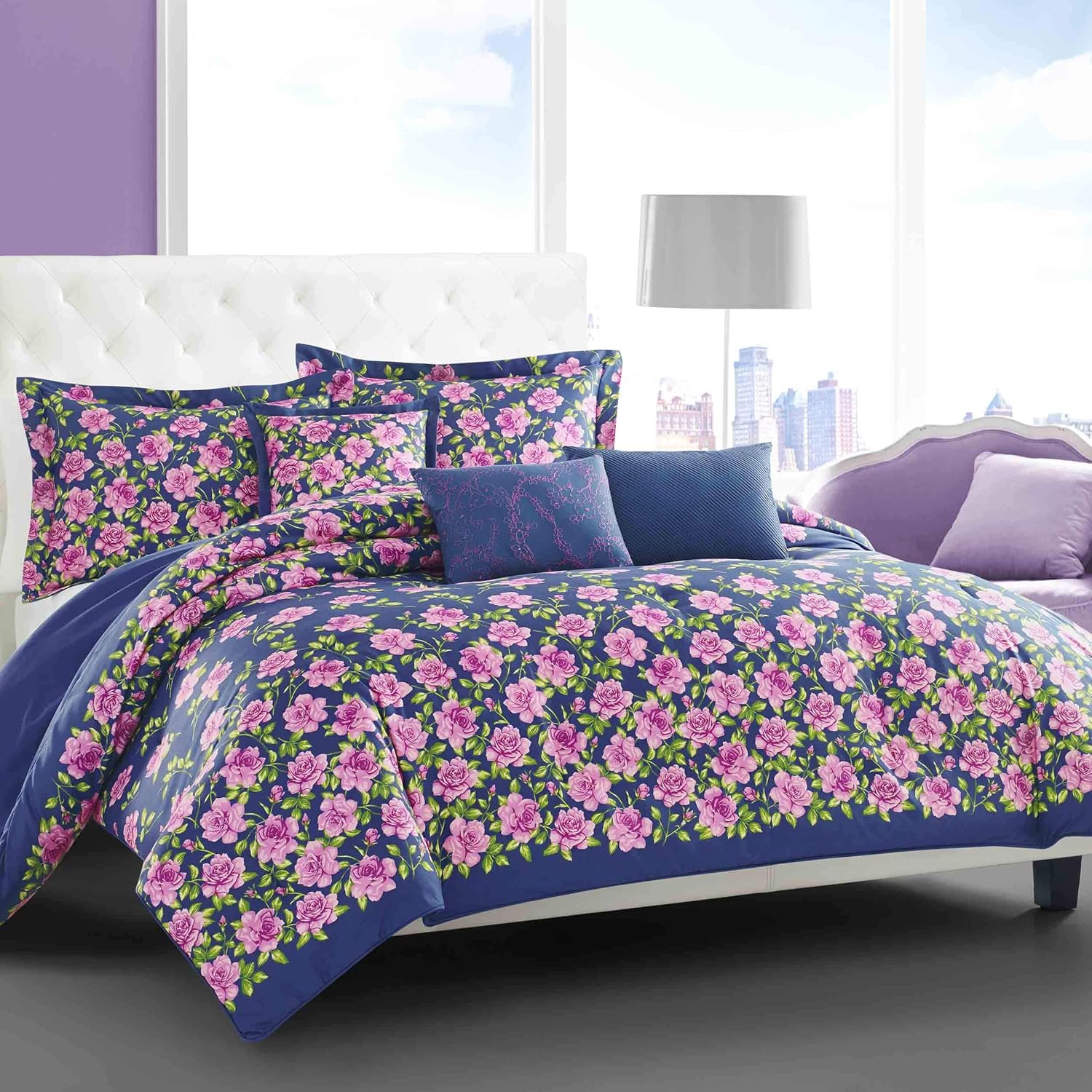 Betsey Johnson Rose Garden Comforter Set Twin Dark Blue Amazon In Home Kitchen