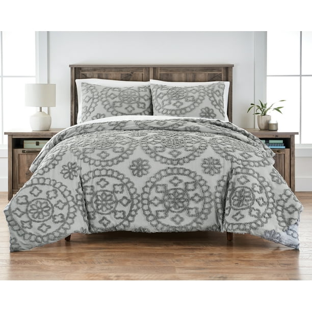 Better Homes And Gardens Tufted Global Grey 3 Piece Comforter Set King Walmart Com Walmart Com