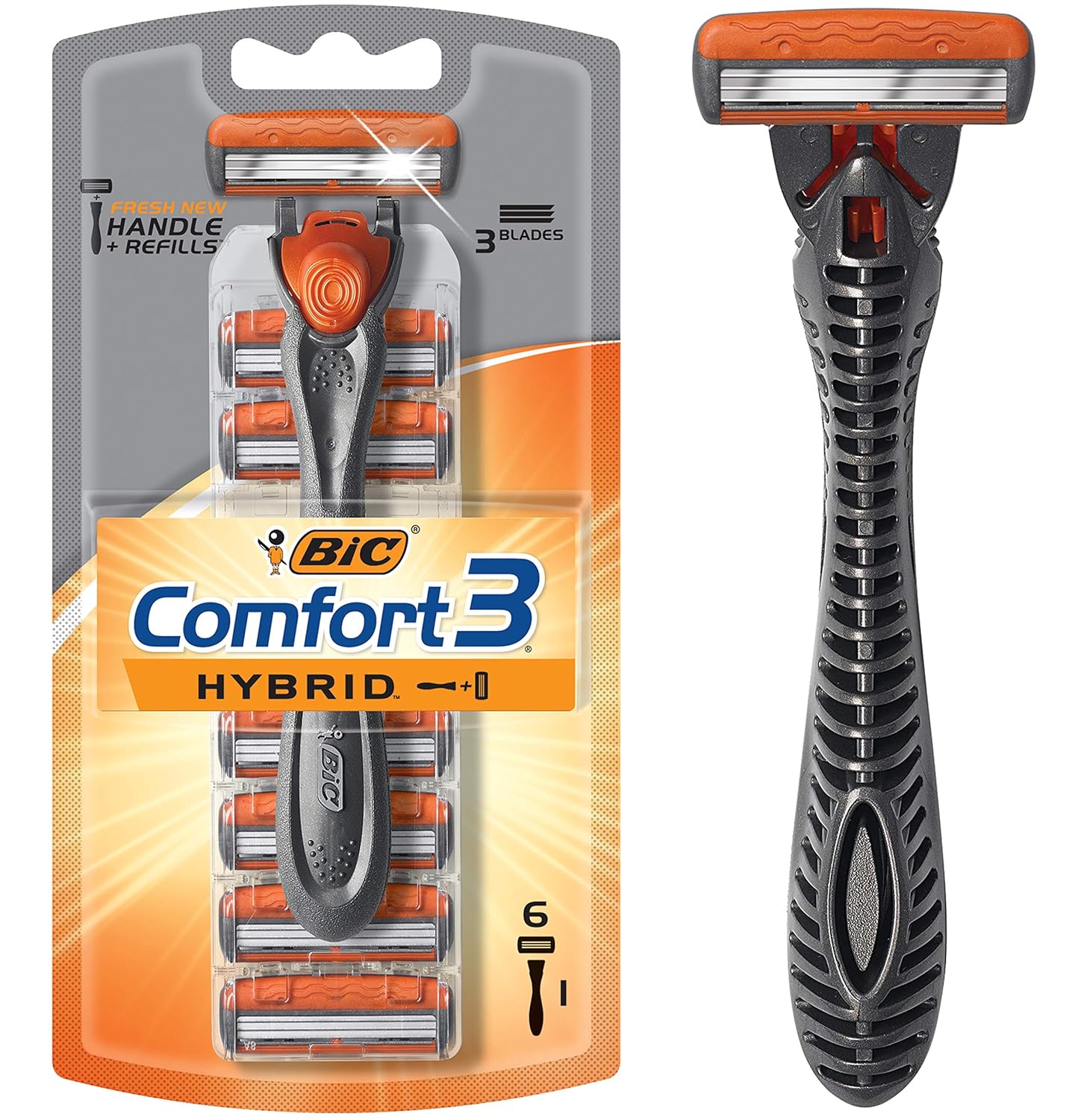 Amazon Com Bic Comfort 3 Hybrid Men S 3 Blade Disposable Razor 1 Handle And 6 Cartridges W Beauty