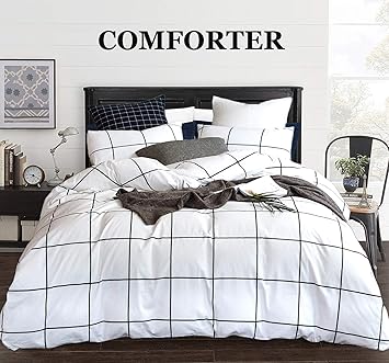 Amazon Com Karever White Comforter Set Big Grid Plaid Pattern Printed Down Alternative Comforters 100 Cotton Fabric In 2020 White Comforter Comforter Sets Comforters