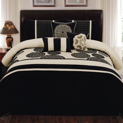 Biatta 7 Piece Comforter Set In Black Ivory Bed Bath Beyond