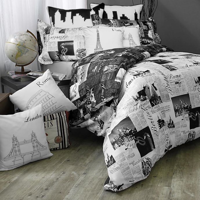 Passport London And Paris Reversible Comforter Set In Black White Bed Bath Beyond