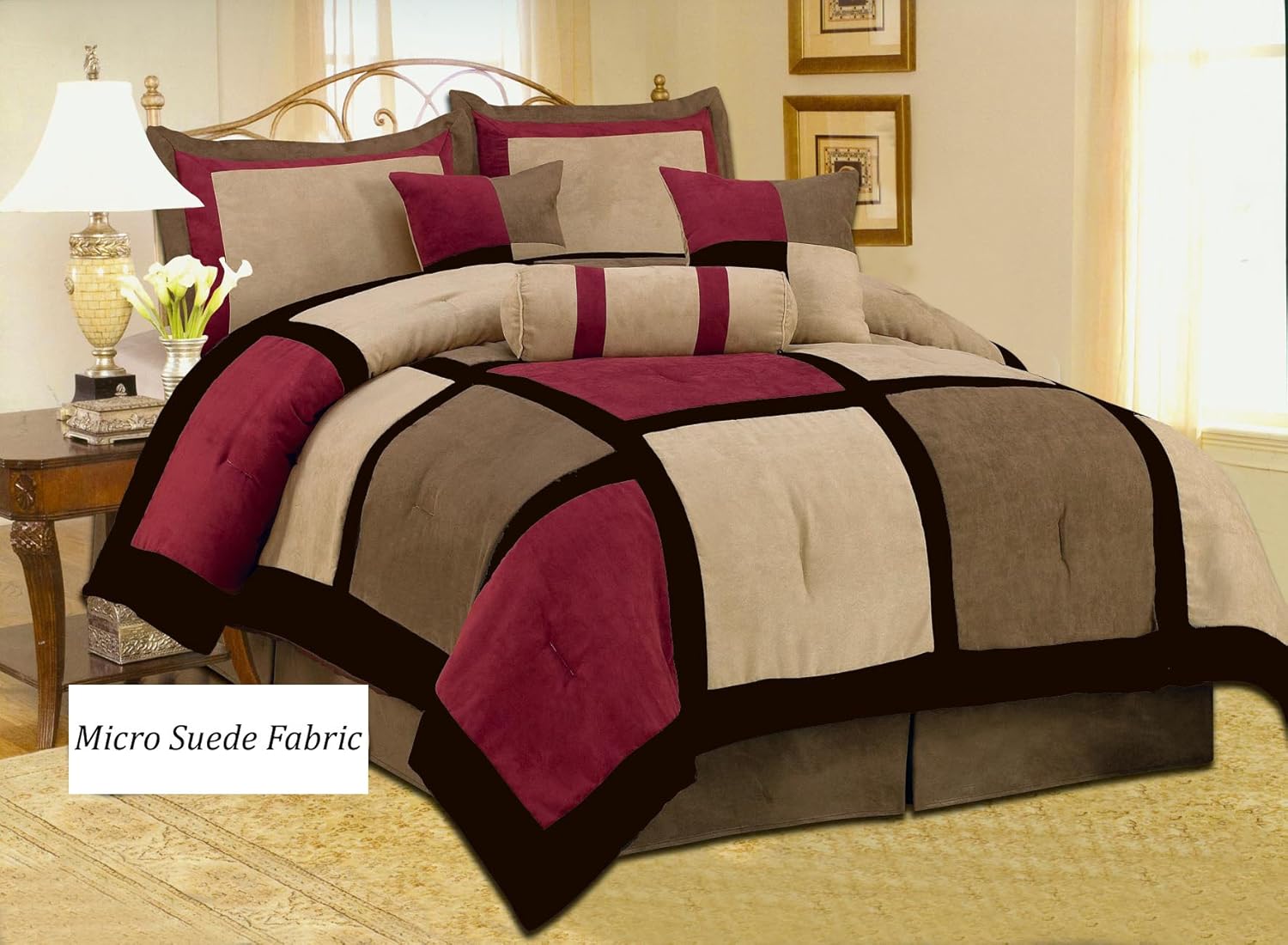 Dawn California King Size 7 Piece Micro Suede Comforter Bedding Set Soft Patchwork Oversized Bed In A Bag Black Red Walmart Com Walmart Com