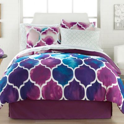 Modern Teen Purple Blue Girls Tie Dye Twin Comforter Set 5 Piece Bed In A Bag