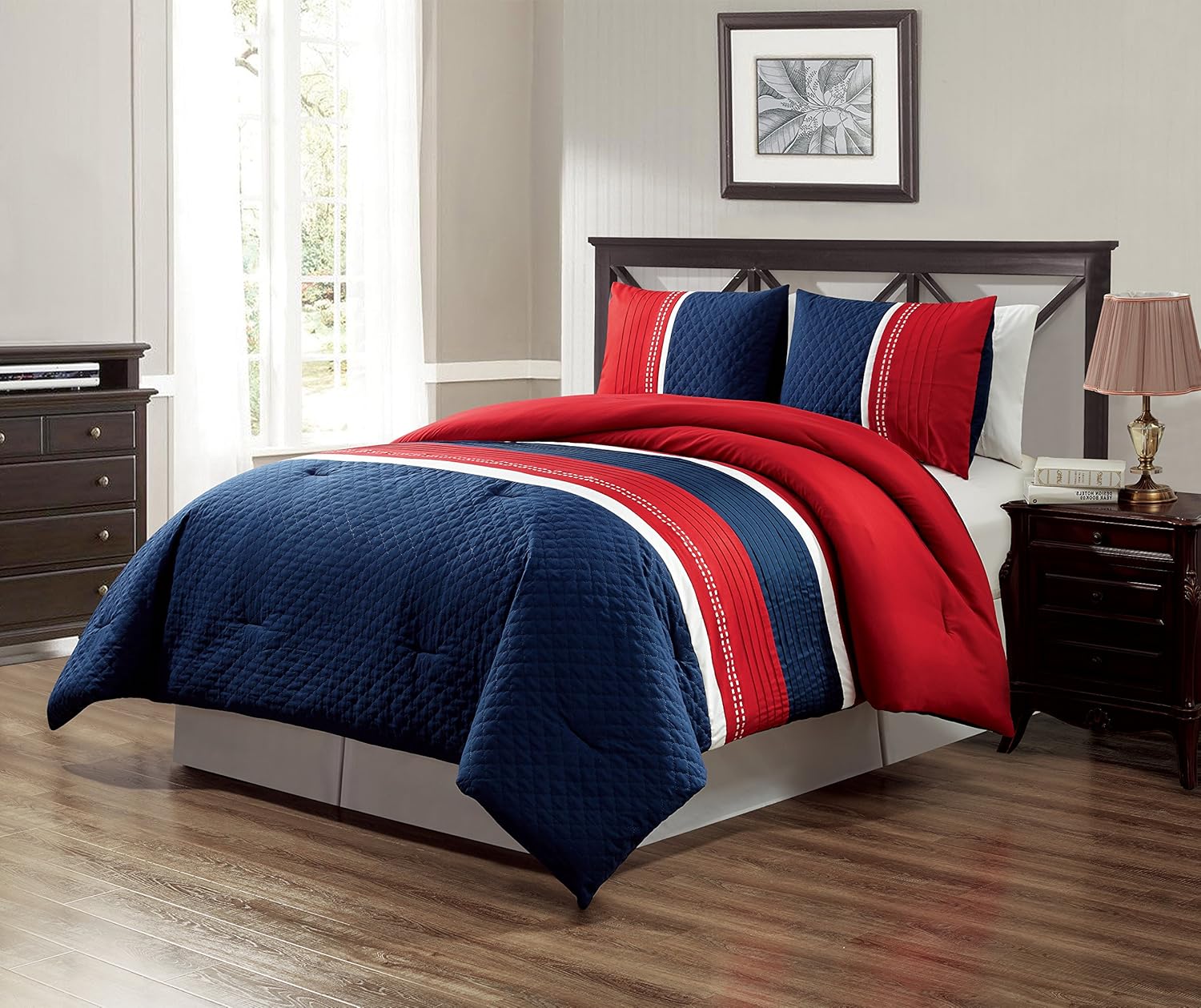 Nouvelle Home Nautical 3 Piece Blue Red And White Full Queen Comforter Set Csm030krd The Home Depot