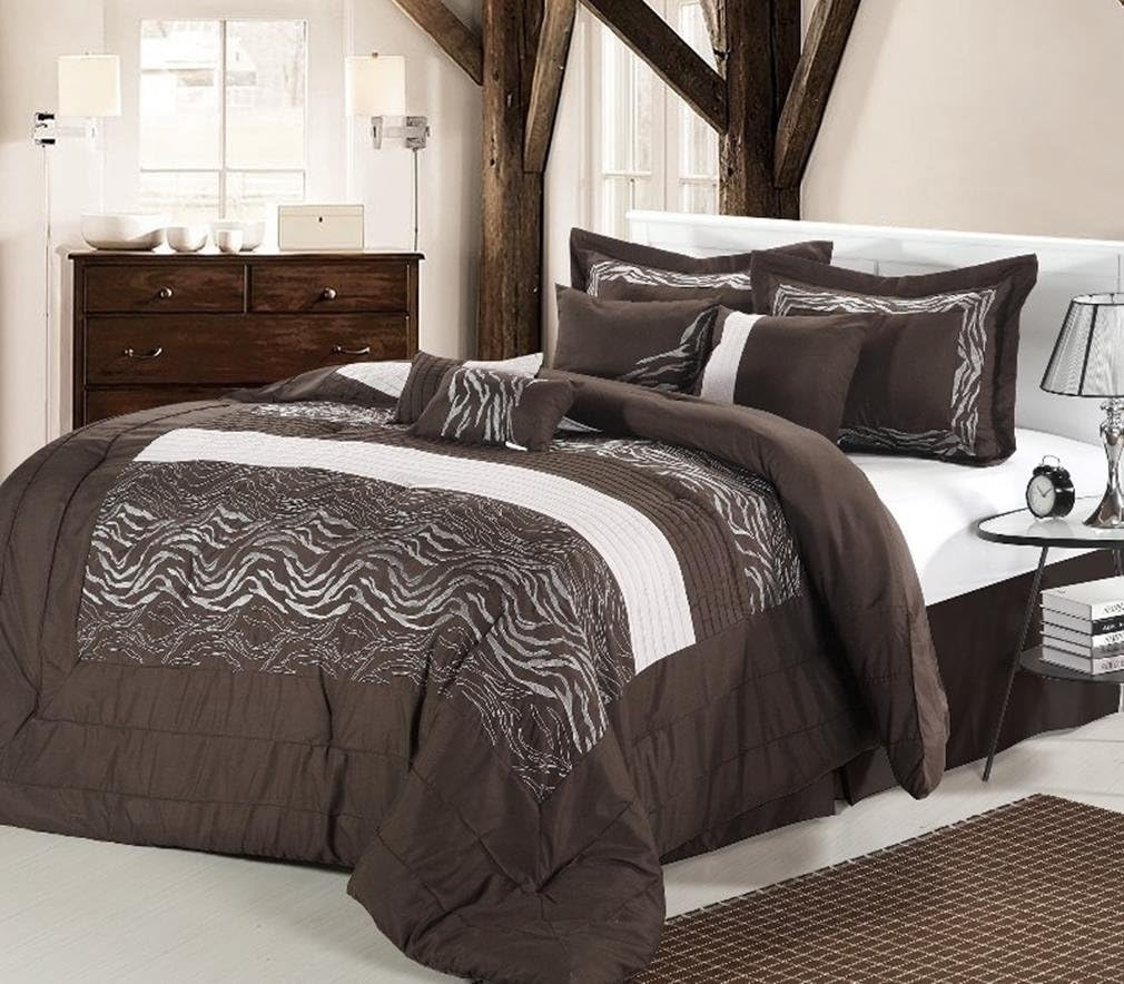 Animal Print Bedding 8pc Zambia Chocolate Brown Zebra Print Comforter Set Queen Ebay Zebraprintbedding Comforter Sets Brown Comforter Sets Luxury Bedding