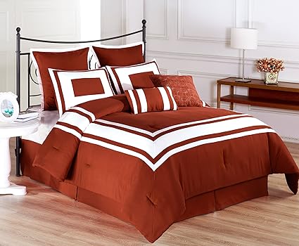 California King Burnt Orange Cozy Beddings Lux Decor Collection 8 Piece White Stripe Comforter Set California King Burnt Orange Amazon In Home Kitchen