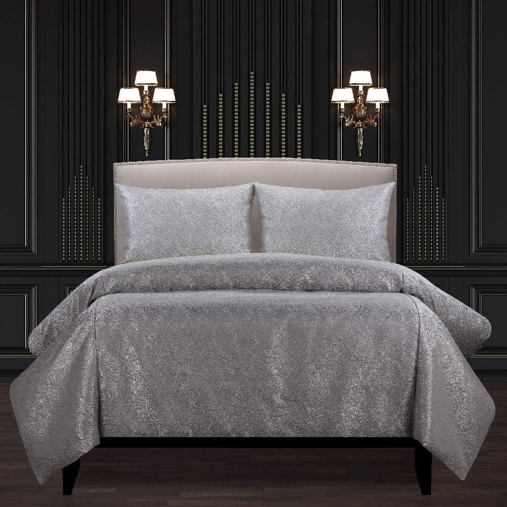Amazon Com Hnu 6 Piece Silver Gray Cal King Bedding Set Geometric Bed Comforter Set Duvet Cover Glam Luxurious Designer Modern Decorative Soft Chic Snug Warm Solid Color Opulent Polyester Home Kitchen