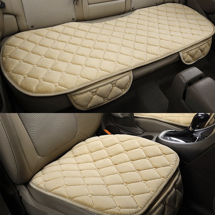 Ecloud Shop Comfortable Car Seat Cushion Pad Four Seasons Universal Car Driver Interior Seat Cover Mat Pads For Automotive Vehicle Supplies Beige 1pc