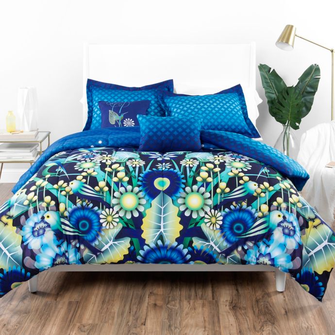 Catalina Estrada Ce Jardin Reversible Comforter Set In Navy Green Bed Bath Beyond