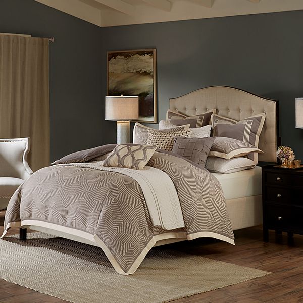 Amazon Com Madison Park Signature Chateau King Size Bed Comforter Duvet 2 In 1 Set Bed In A Bag Taupe Soutache Cord Embroidery 9 Piece Bedding Sets Faux Linen Bedroom Comforters Home Kitchen