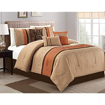 Amazon Com Chezmoi Collection Napa 7 Piece Luxury Leaves Scroll Embroidery Bedding Comforter Set Queen Rust Orange Taupe Brown Home Kitchen