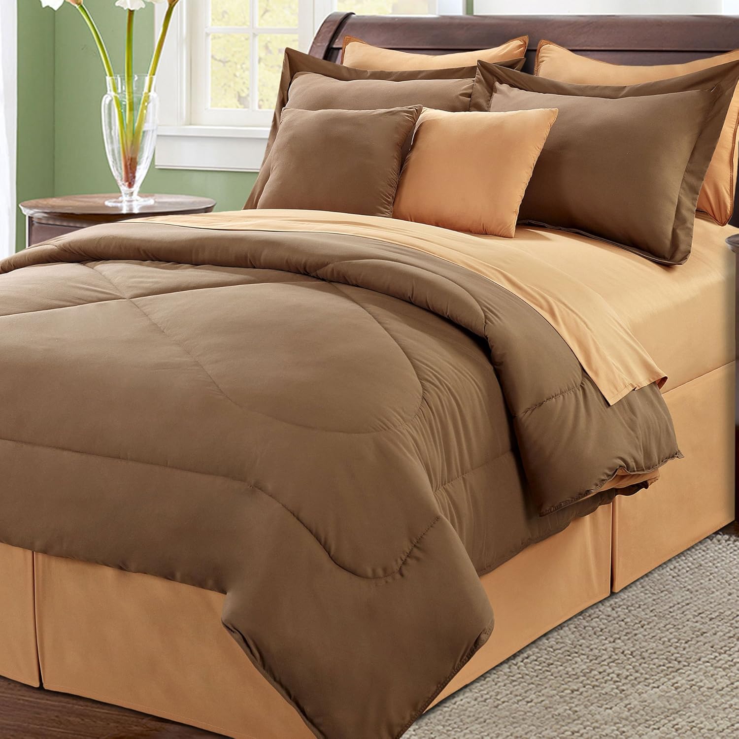 Serenta Reversible 10 Piece Comforter Set Queen Chocolate Burnt Orange Amazon In Home Kitchen