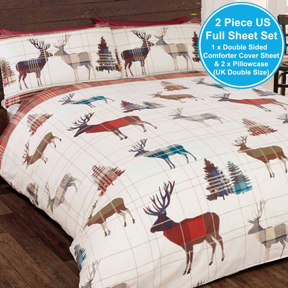 Woodland Stag Christmas Duvet Cover Set Bedding Adults Double King Size Ebay