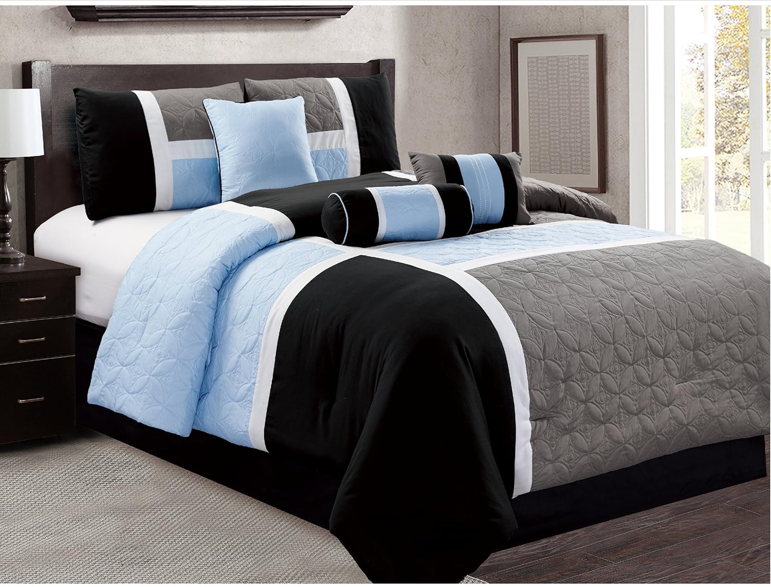Buy 7 Piece Luxury Bed In Bag Comforter Set Closeout King Black Blue Online At Low Prices In India Amazon In