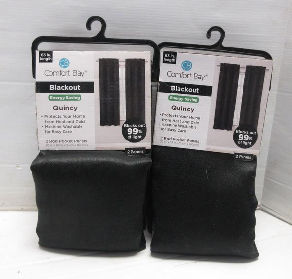 Albrecht Auctions 2 Sets Of Black Comfort Bay Blackout Curtains