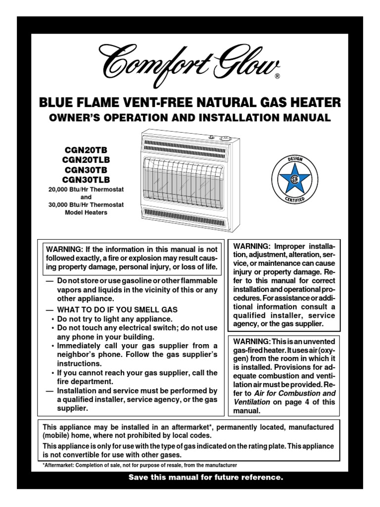 Cgn20b Comfort Glow Gas Wall Heater Heater Parts