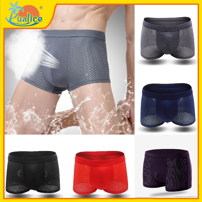 Spot Mesh Men S Solid Breathable Underwear Bamboo Fiber Men S Comfortable Boxer Shorts Shopee Philippines