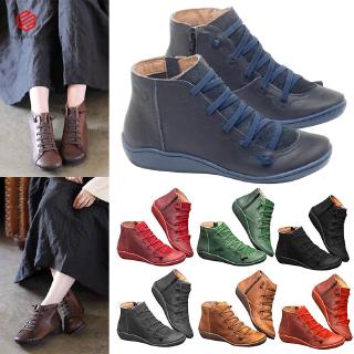 Cod Leather Ankle Boots Autumn Vintage Lace Up Women Shoes Comfortable Flat Heel Boots Zipper Sho Shopee Philippines