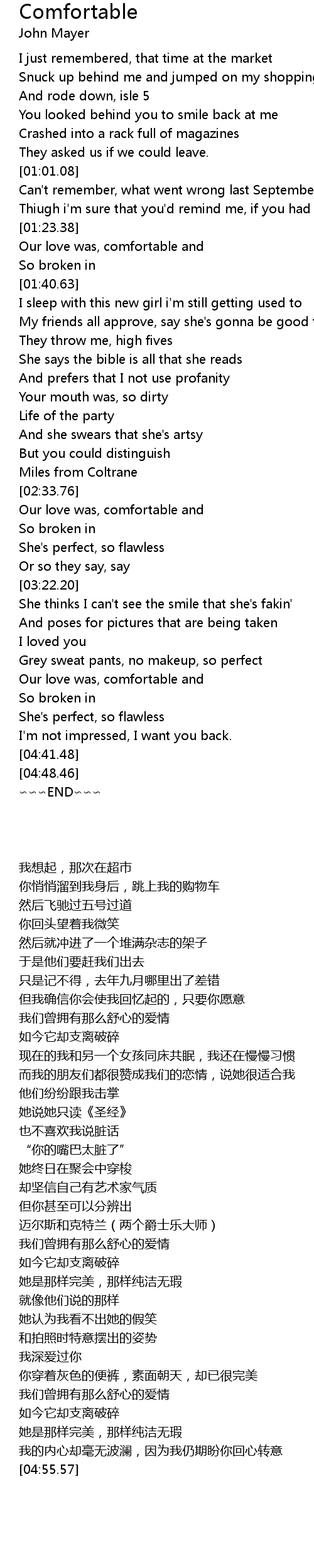 John Mayer Comfortable Lyrics Download Mp3 Lyrics2you