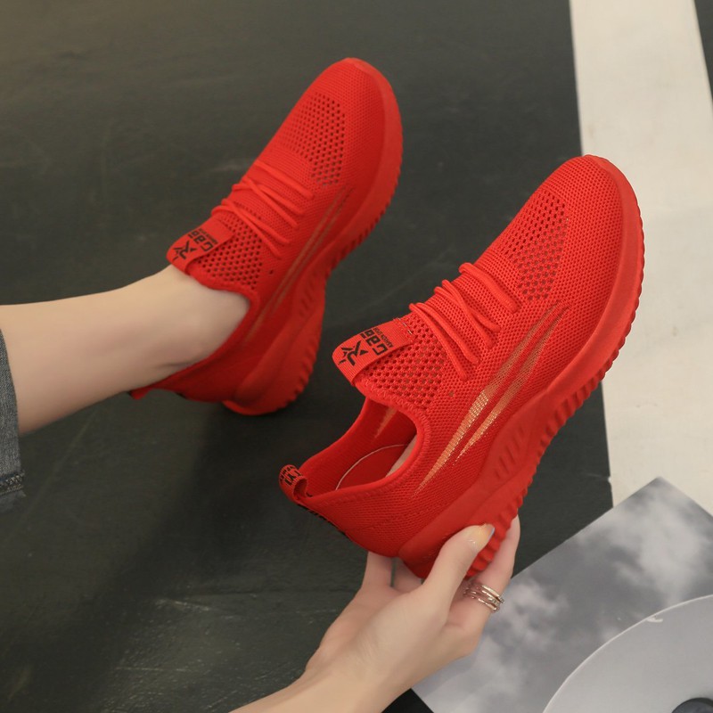 Red Women S Shoes Sports Red Shoes Mother Leap Month Shoes Cloth Shoes Comfortable Soft Bottom Flat Bottom Middle Aged And Elderly Running Shoes Shopee Philippines