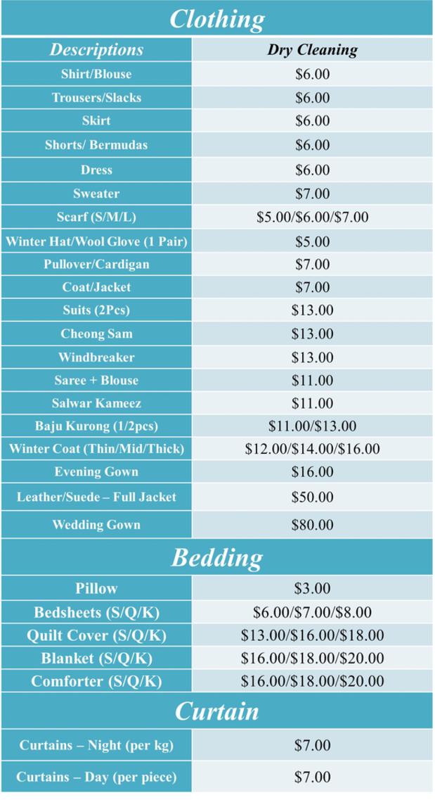How Much Does It Cost For Dry Cleaning Service In Singapore Singapore Dry Cleaning