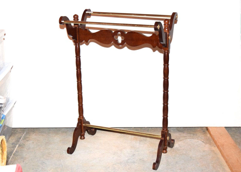 Wood And Brass Tone Comforter Rack Ebth