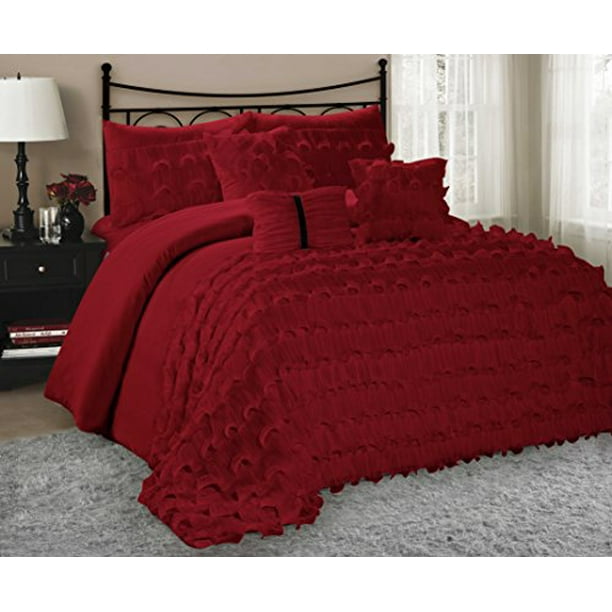 7 Piece Alustra Solid Color Ruffled Clearance Bedding Comforter Set Fade Resistant Wrinkle Free No Ironing Necessary Super Soft All Size Queen King Cal King Size Queen Burgundy Walmart Com Walmart Com