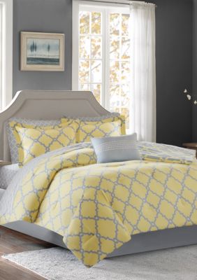 Madison Park Essentials Merritt Reversible Complete Comforter Set Grey Yellow Belk