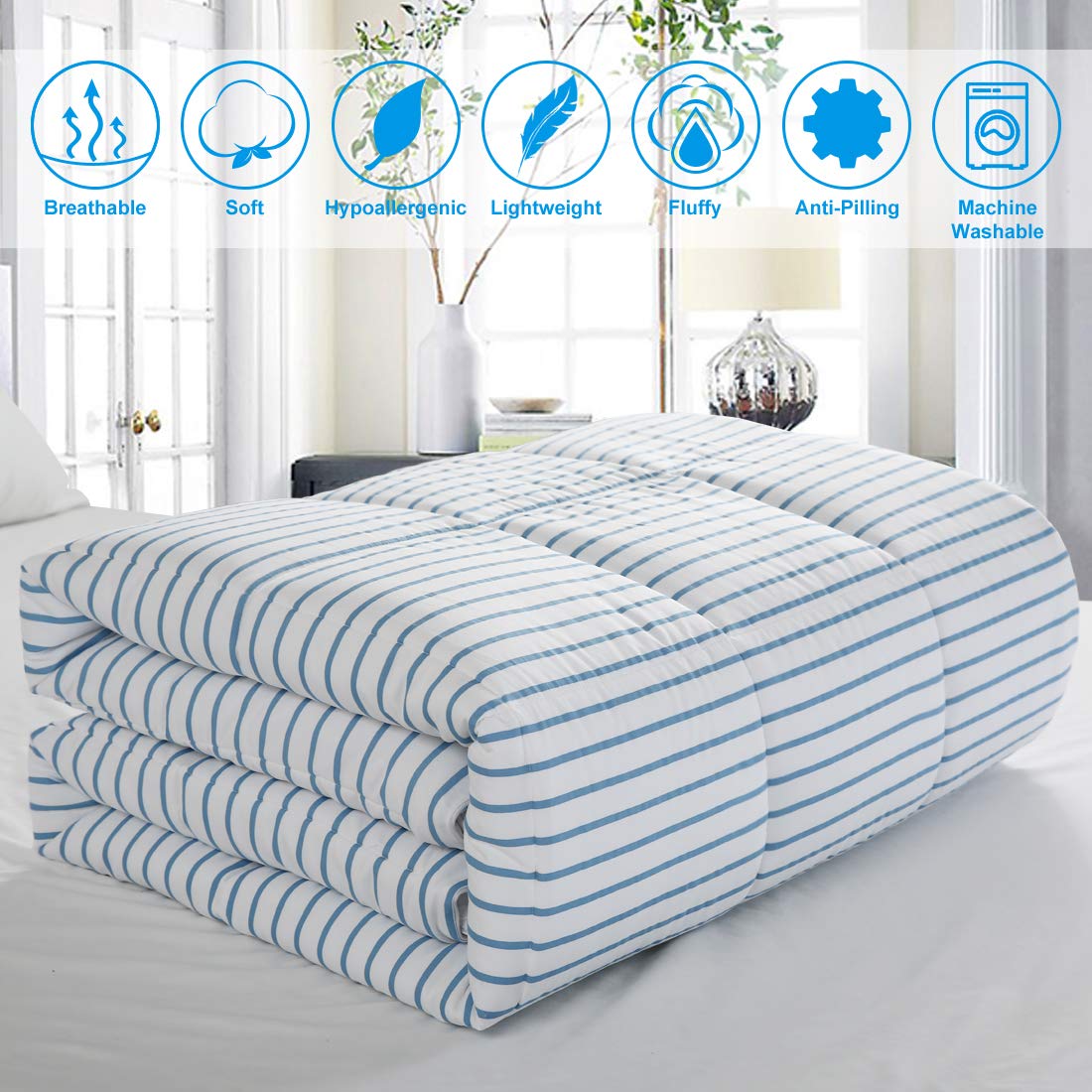 Amazon Com Edilly All Season Luxury Down Alternative Quilted Queen Comforter Stand Alone Comforter For Queen Size Bed Summer Cool Soft Reversible Duvet Insert With 4 Corner Tabs 88 X 88 Gray White Stripe Home Kitchen